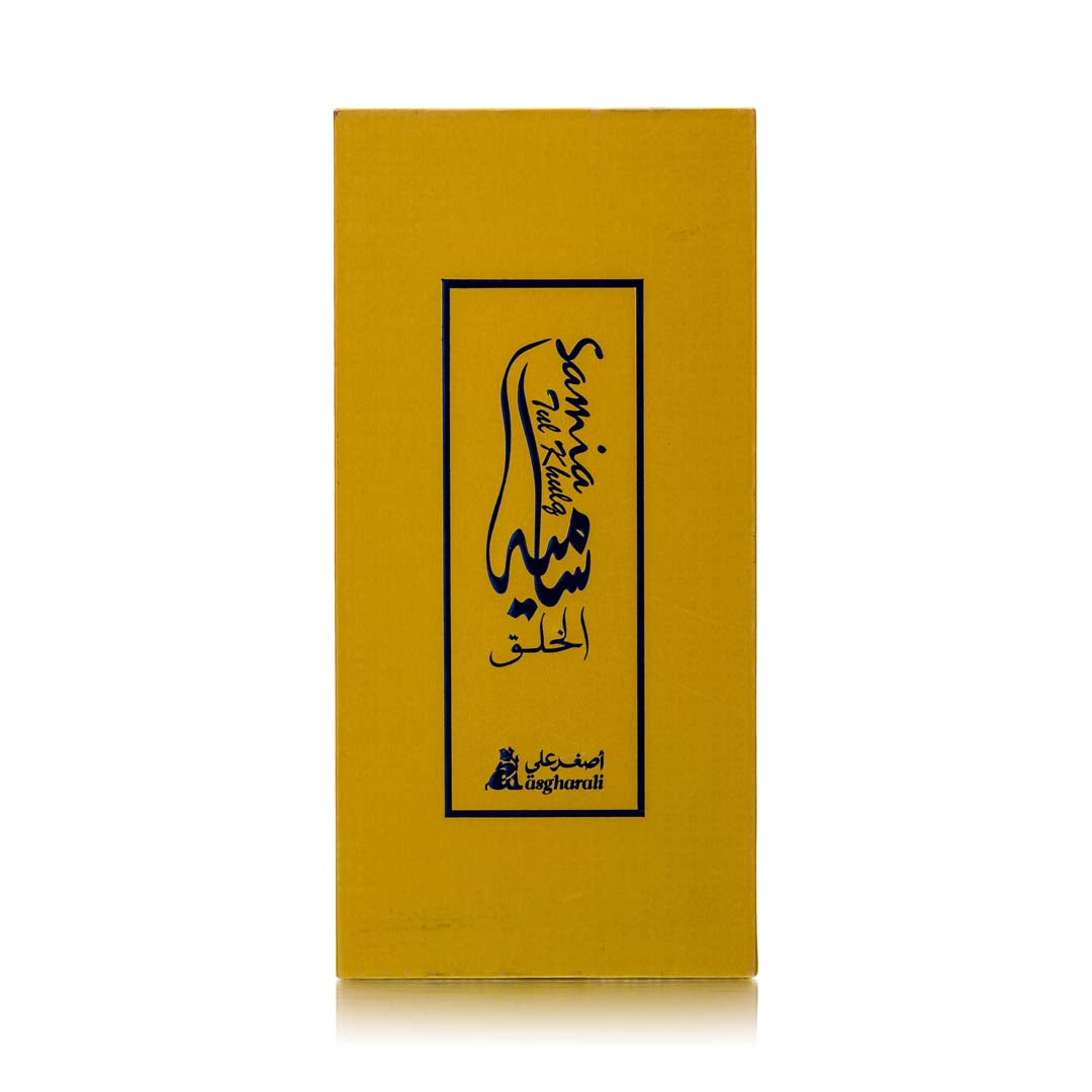 SAMIA TUL KHULQ is the epitome of all things nice. The fragrance itself has a dreamy ambience of Oriental, Floral, Ambery leaving you in a wonderland from its top note of rose saffron and red fruits a pleasant combination to awe any women. Heart notes consists of woody texture base. Dry amber musk and vanilla gives it staying power that will ensure to compliment all day. Presented in an elongated bottle Prussian blue with perfume capacity of 100ml.
