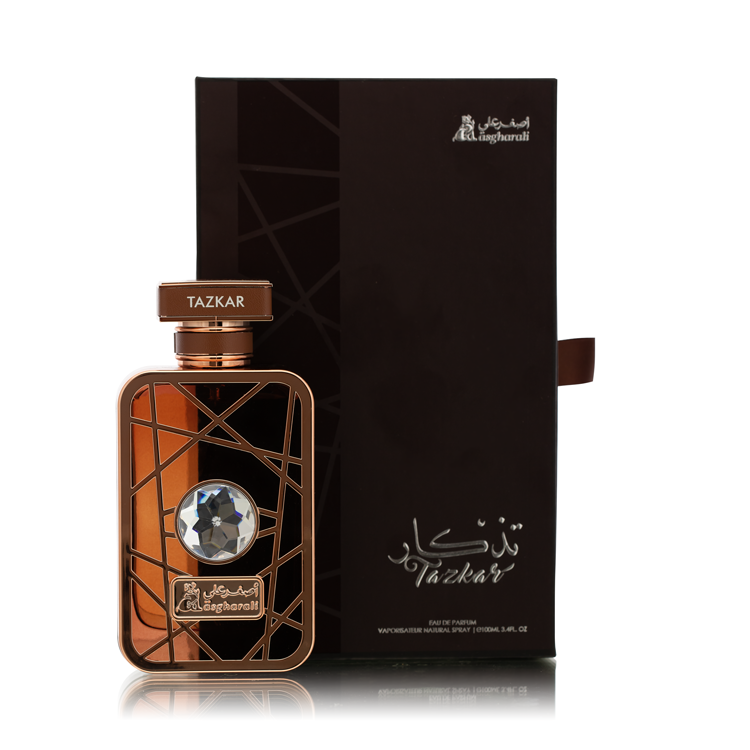 TAZKAR EDP 100ML, Soft and pleasant scent of exotic woods harmonizes with warm, bitter spices such as Pepper, Sage, Lavender, and Bergamot that provides an exotic touch for an ultimate experience. while the heart includes an exhilarating aroma from the Herbal, Floral, Saffron, Cardamom, Leather, Magnolia, Thyme, and Spicy. Finally, with the base scents of Musk, Patchouli, Vetiver, Moss, Agarwood, Cedarwood, and sweet Amber makes this is the right blend of sweet and spicy. Tazkar magnificent bottle design, is truly unique and beautified in its own way.